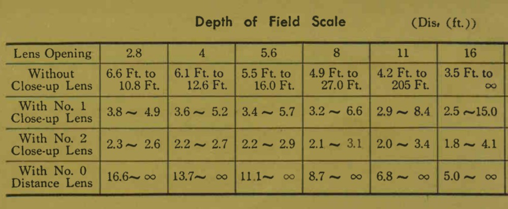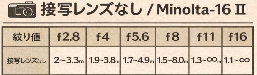 Minolta-16 ⅡManualより被写界深度表